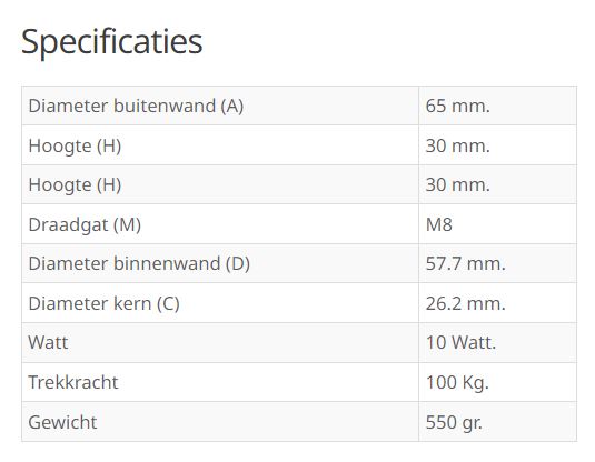 Diameter x height: 65 x 30 mm