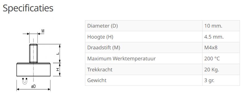 Dimensions: 10 x 4.5 mm, M4 threaded pin x8 mm