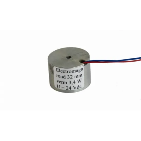 De ronde elektro kleefmagneet met een diameter van 32 mm is een krachtige oplossing voor industriële toepassingen waar een hoge houdkracht (24 kg) vereist is in een compacte behuizing. Dankzij de nauwkeurige afwerking en het centrale M4 draadgat is deze magneet eenvoudig te integreren in complexe systemen voor machinebouw en automatisering.