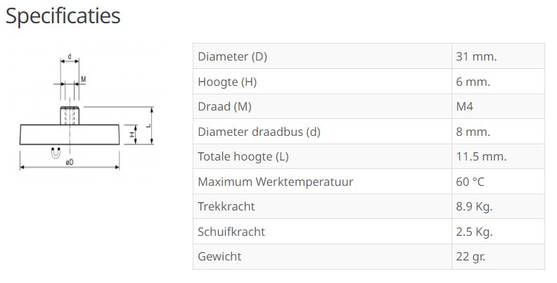 Neodymium magneetsysteem rubber draadgat Ø 31 mm