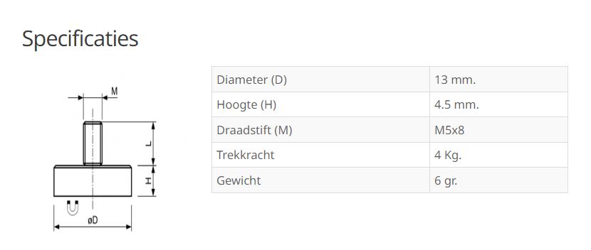 Afmetingen: 13 x 4,5 mm, draadstift M5 x8 mm